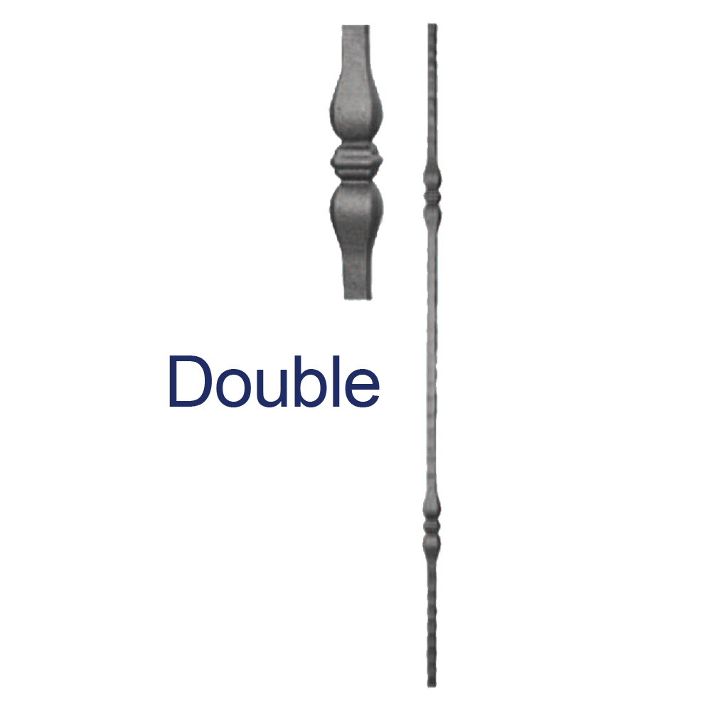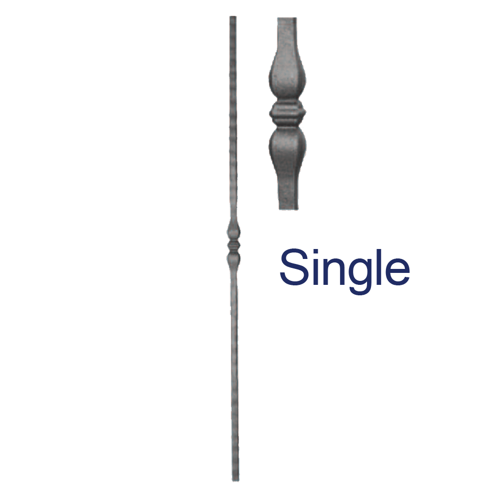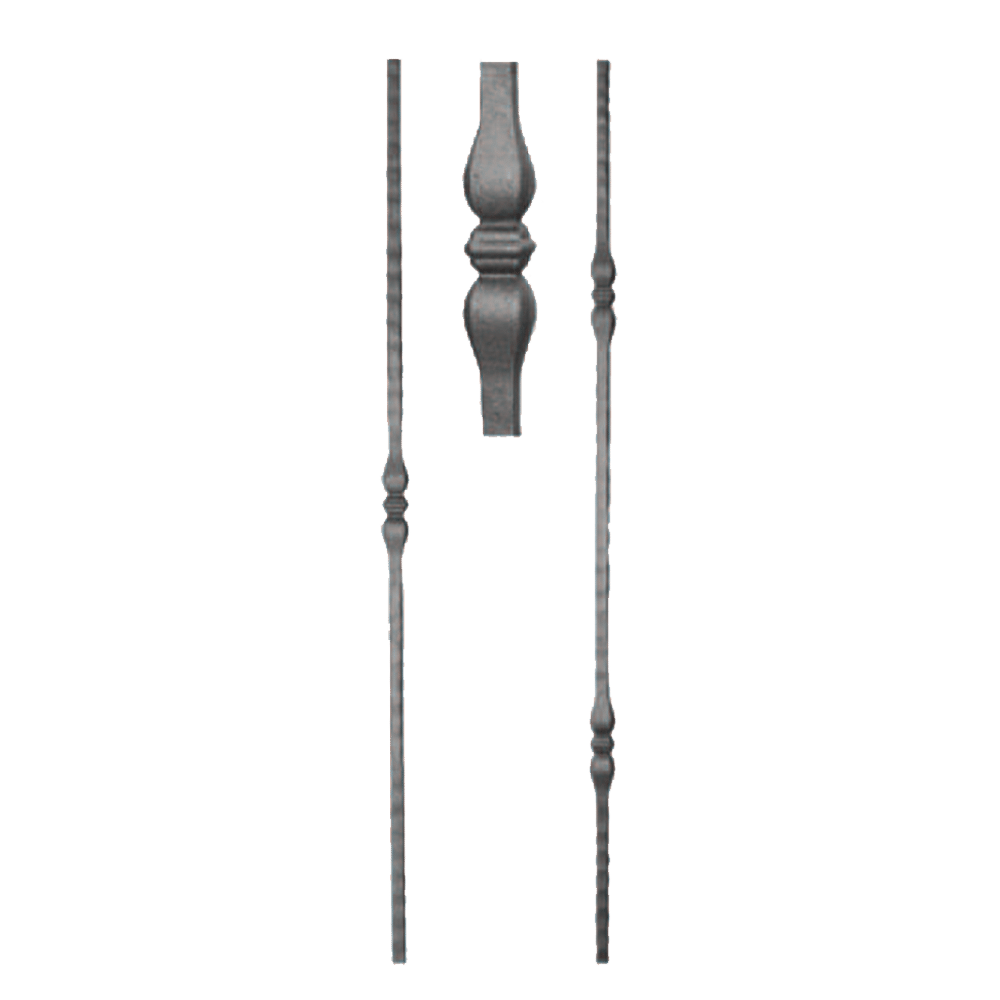Steel hammered square picket, 9/16” square and 39-3/8” high, available in single or double center designs.